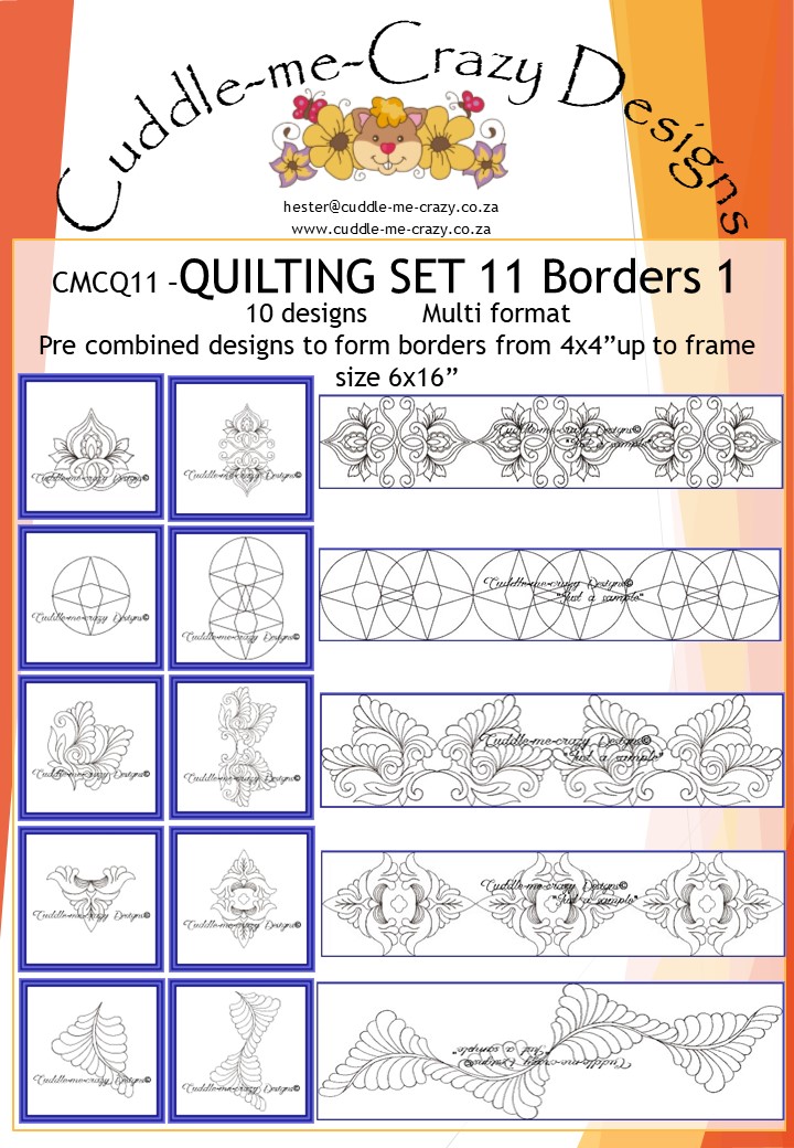 Sale! QUILTING BORDERS 1R500,00 Original price was: R500,00.R125,00Current price is: R125,00. QUILTING DESIGNS, BORDERS, DESIGNS MULTIPLIED 2,3 OR 4 TIMES, DIFFERENT HOOP SIZES - QUILTING BORDERS 1 quantity + Add to cart SKU: CMCQ11 Category: FREEMOTION QUILTING DESIGNS Related products QUILTING SET 15 with or without backfill Sale! R500,00 Original price was: R500,00.R125,00Current price is: R125,00. Add to cart QUILTING SET 1 Sale! R500,00 Original price was: R500,00.R125,00Current price is: R125,00. Add to cart QUILTING BORDERS 2 Sale! R500,00 Original price was: R500,00.R125,00Current price is: R125,00. Add to cart QUILTING SET 6 with or without backfill Sale! R400,00 Original price was: R400,00.R100,00Current price is: R100,00. Add to cart