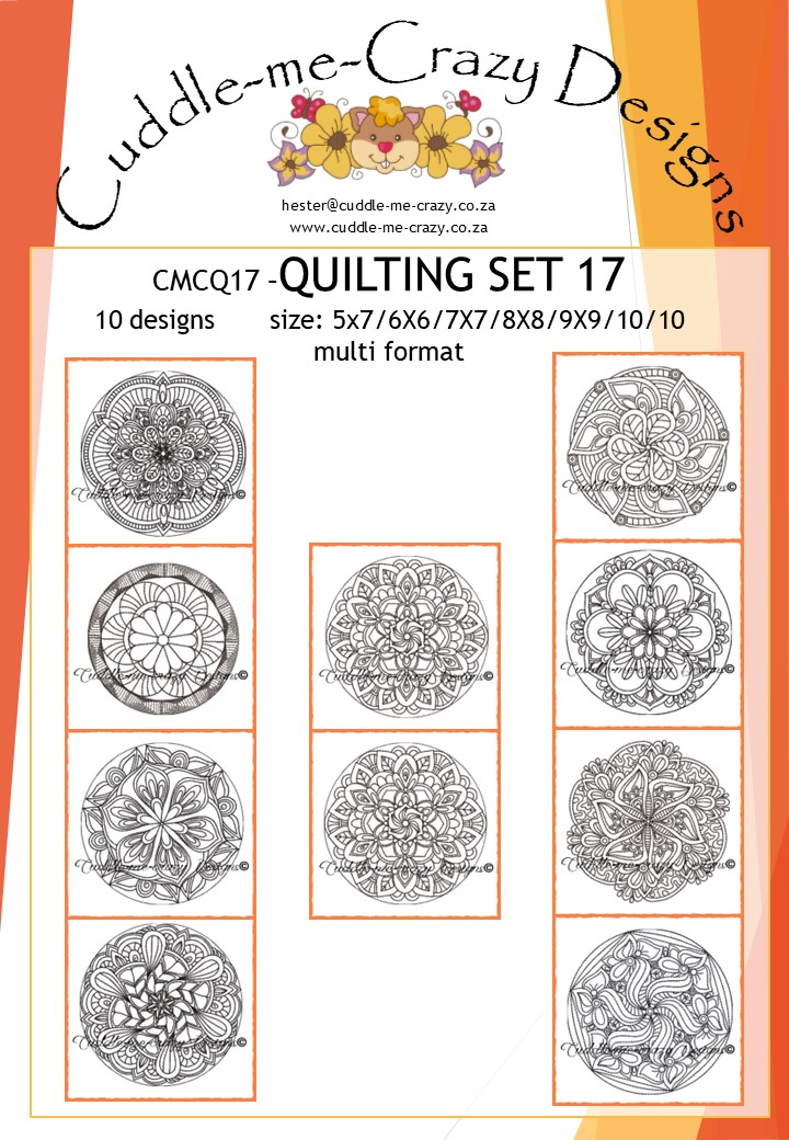Sale! QUILTING SET 17R500,00 Original price was: R500,00.R125,00Current price is: R125,00. QUILTING DESIGNS, DIFFERENT HOOP SIZES, set with outlines - QUILTING SET 17 quantity + Add to cart SKU: CMCQ17 Category: FREEMOTION QUILTING DESIGNS Related products QUILTING SET 4 with/without backfill Sale! R500,00 Original price was: R500,00.R125,00Current price is: R125,00. Add to cart QUILTING SET 7 with or without back fill Sale! R400,00 Original price was: R400,00.R100,00Current price is: R100,00. Add to cart QUILTING SET 1 Sale! R500,00 Original price was: R500,00.R125,00Current price is: R125,00. Add to cart QUILTING SET 21 Sale! R500,00 Original price was: R500,00.R125,00Current price is: R125,00. Add to cart